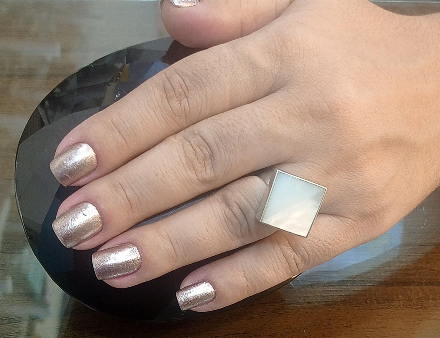 Descrição: Aro liso, pedra em formato quadrado.
