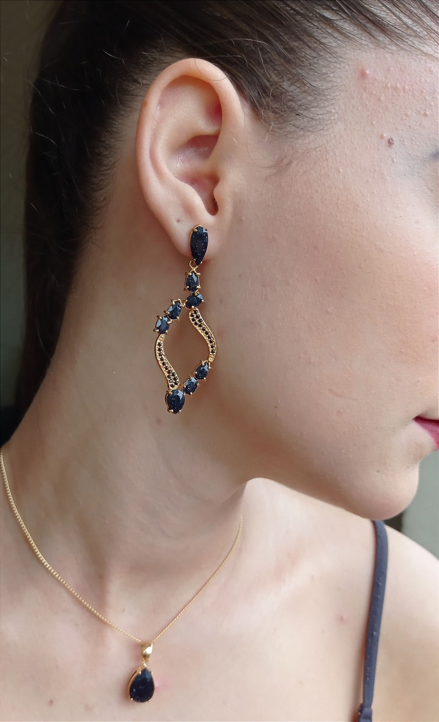 Brincos: pedra na base em formato gota invertida e microzircônias pretas - tamanho do brinco: 6,5 cm de comprimento. (Medindo o tamanho a partir da base)