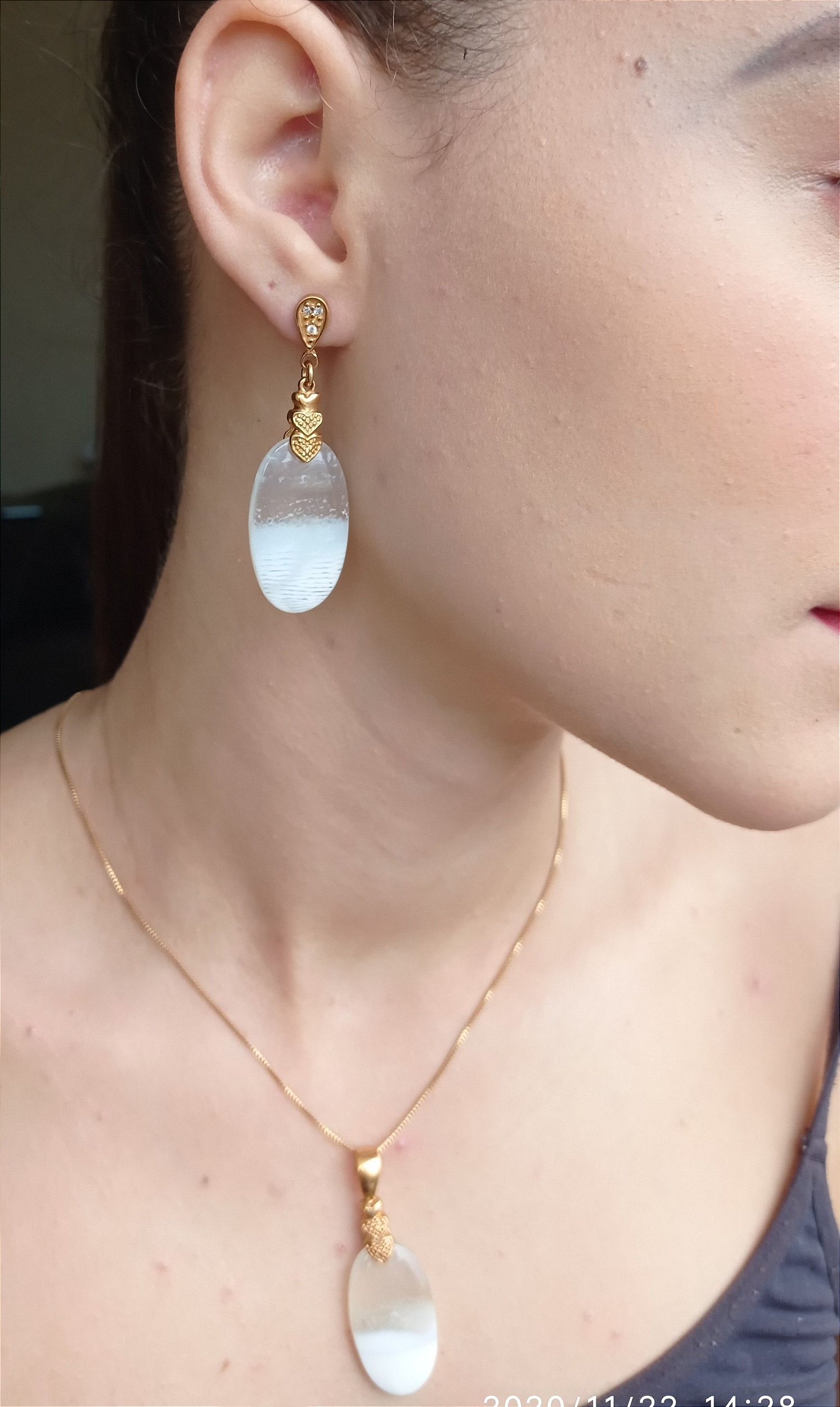 Conjunto semijoia banhado a ouro 18k de Opala bicolor