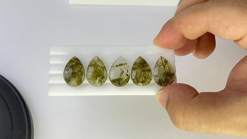| DESCRIÇÃO | KIT 5 Pedras Rutilo Facetado Gota | ||||