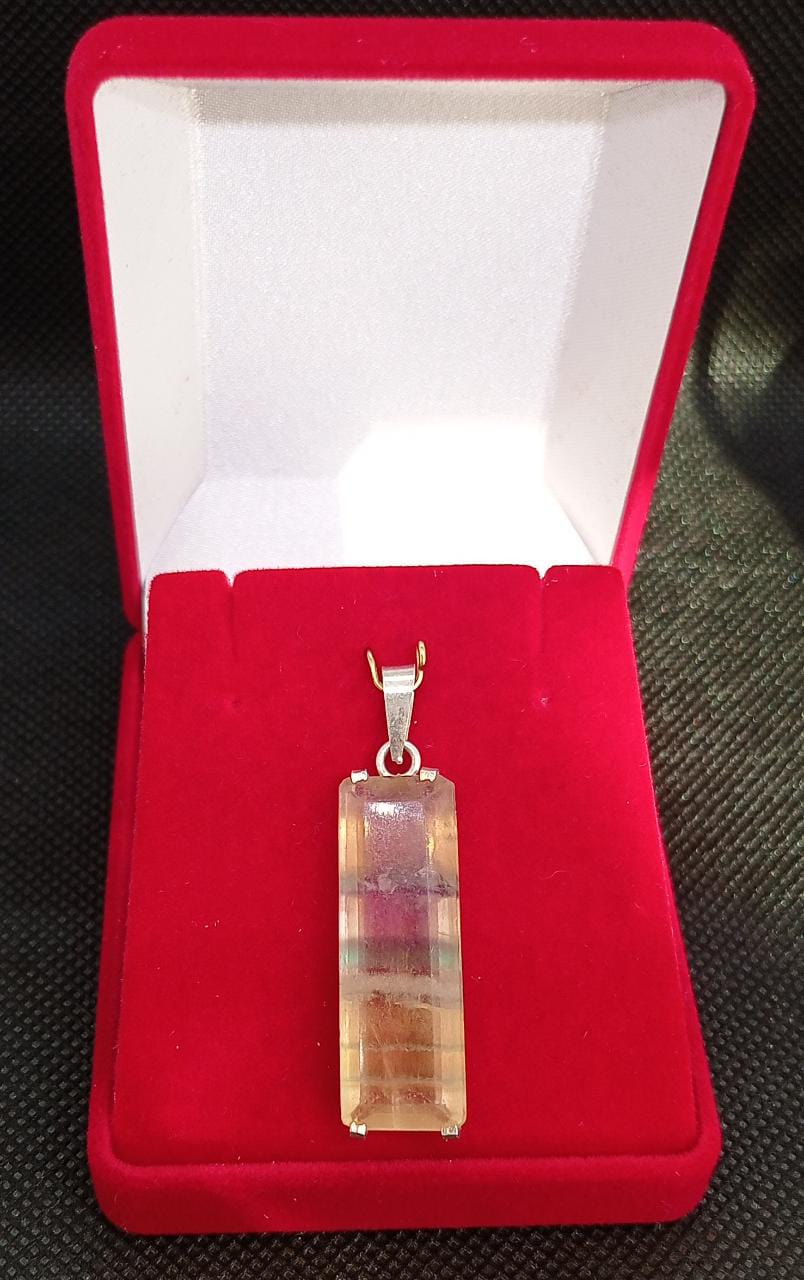 Descrição: Pingente em formato retangular, lapidação facetada.