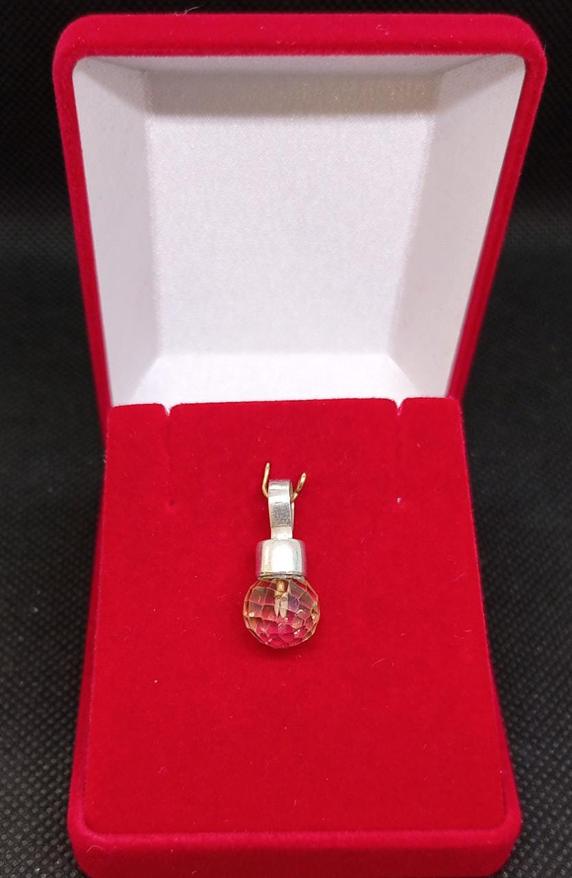 Descrição: Pingente em formato redondo, lapidação facetada.