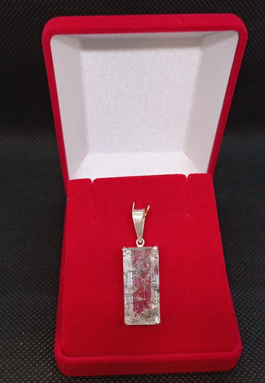 Descrição: Pingente em formato retangular, lapidação facetada.